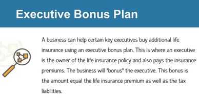 With an executive bonus life insurance plan, a company will provide money to an employee to buy term or permanent coverage. The small business pays the employee a large enough bonus to pay for their life insurance policy premiums.